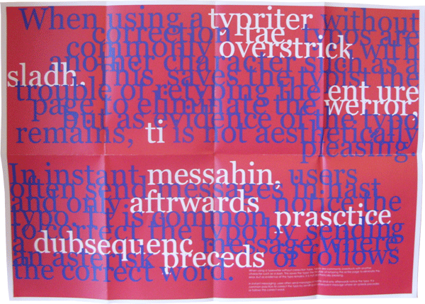 A one-off, purely typographical magazine exploring typos in the modern world. When unfolded from A6 size, the A3 sheet is intended to be used as a poster. It uses basic grids to achieve an invisible but visually striking design.